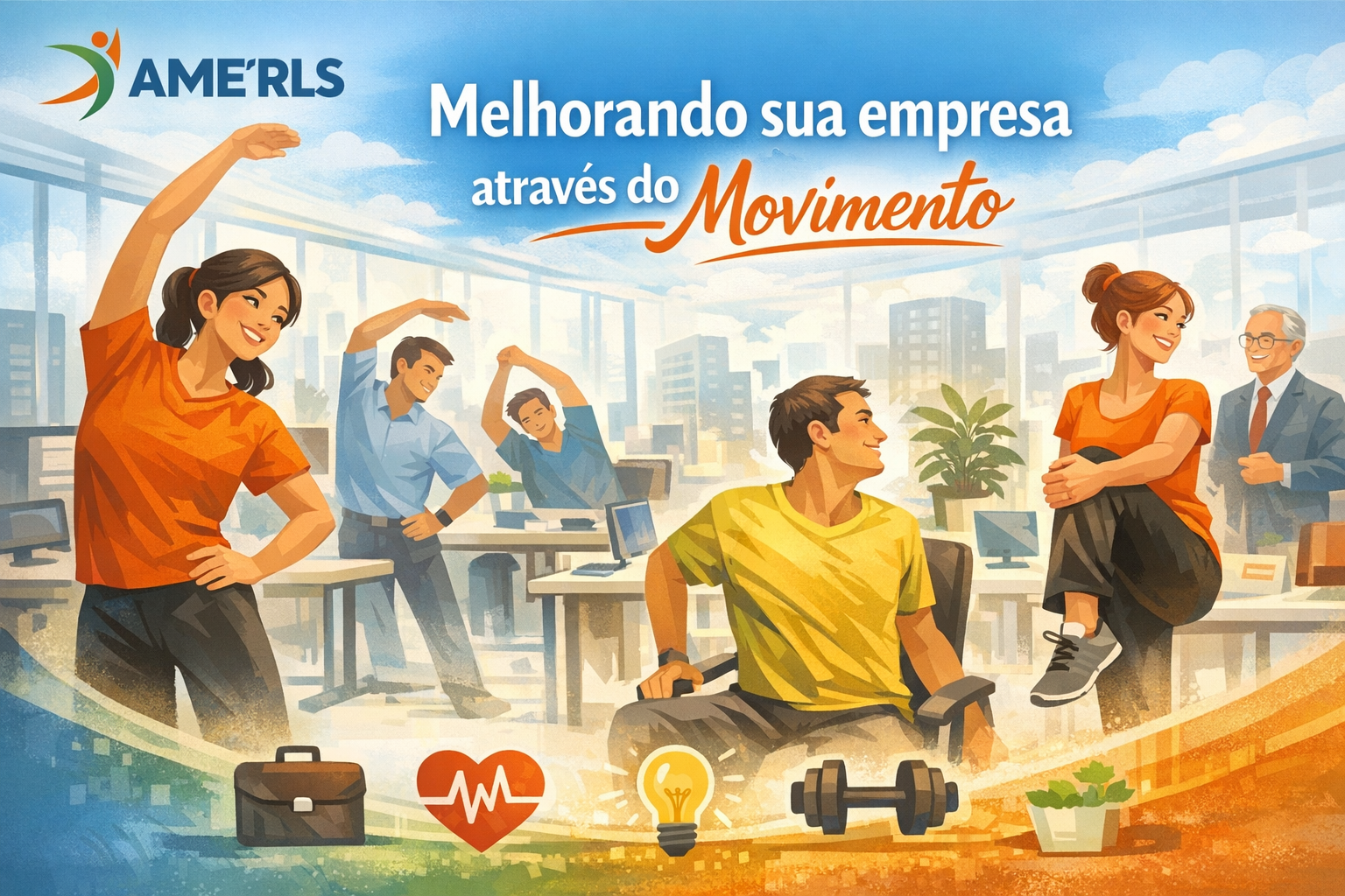 “A AME’RLS oferece soluções completas em bem-estar corporativo, unindo Ginástica Laboral, Atividades Esportivas, Recreação e Saúde para melhorar a qualidade de vida, reduzir afastamentos e aumentar a produtividade das equipes.”